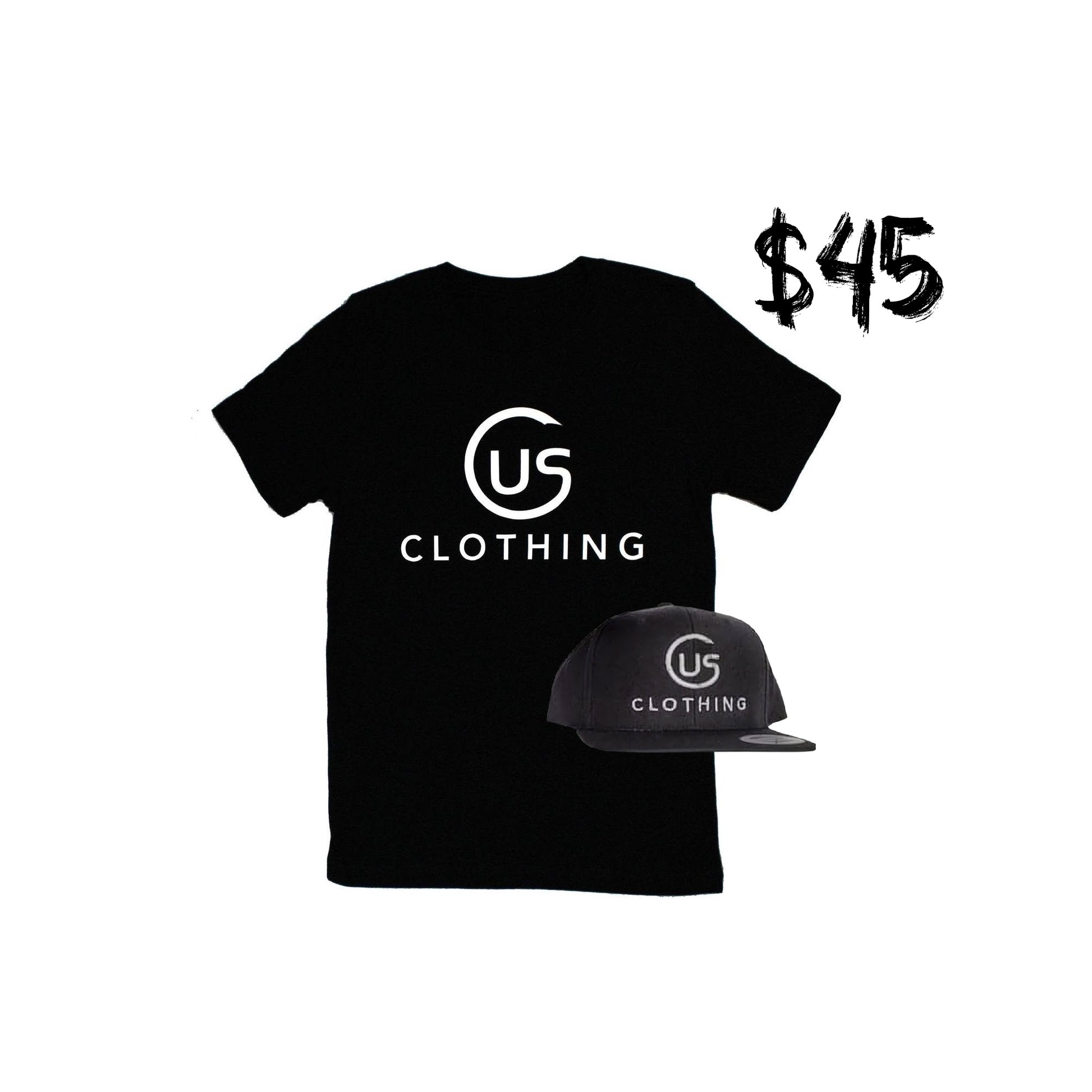 Classic Black Tee with White US Clothing Tee with matching Snapback Hat