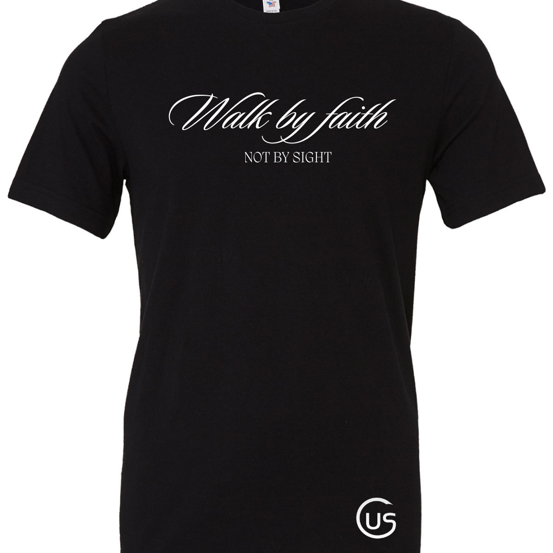 Walk by Faith T-shirt part of our FAITH FIRST COLLECTION this shirt is a constant reminder to live by faith, not by sight.