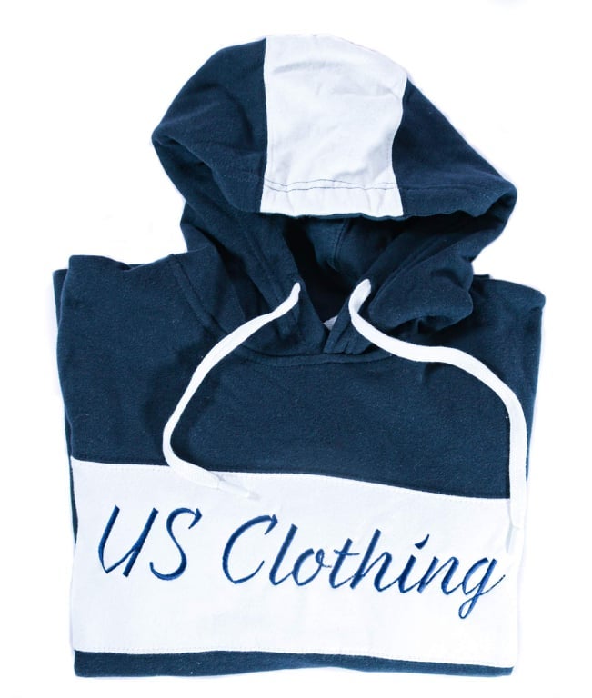 This two tone cursive embroidered US Clothing logo hoodie was named YACHT HOODIE to show together we are the power vessel that has no standard definition.